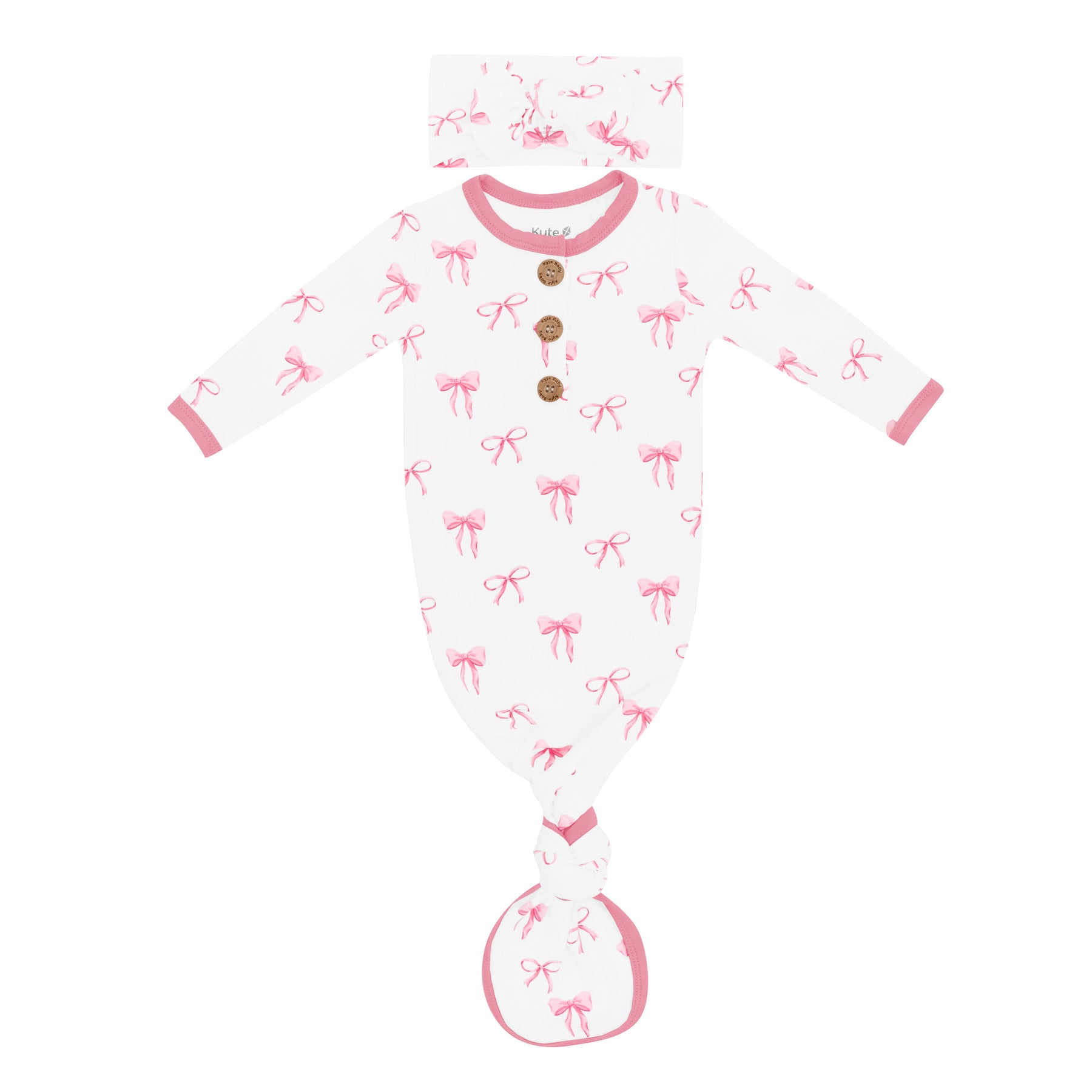 Knotted Gown with Bow Set in Bow for hospital newborn outfit