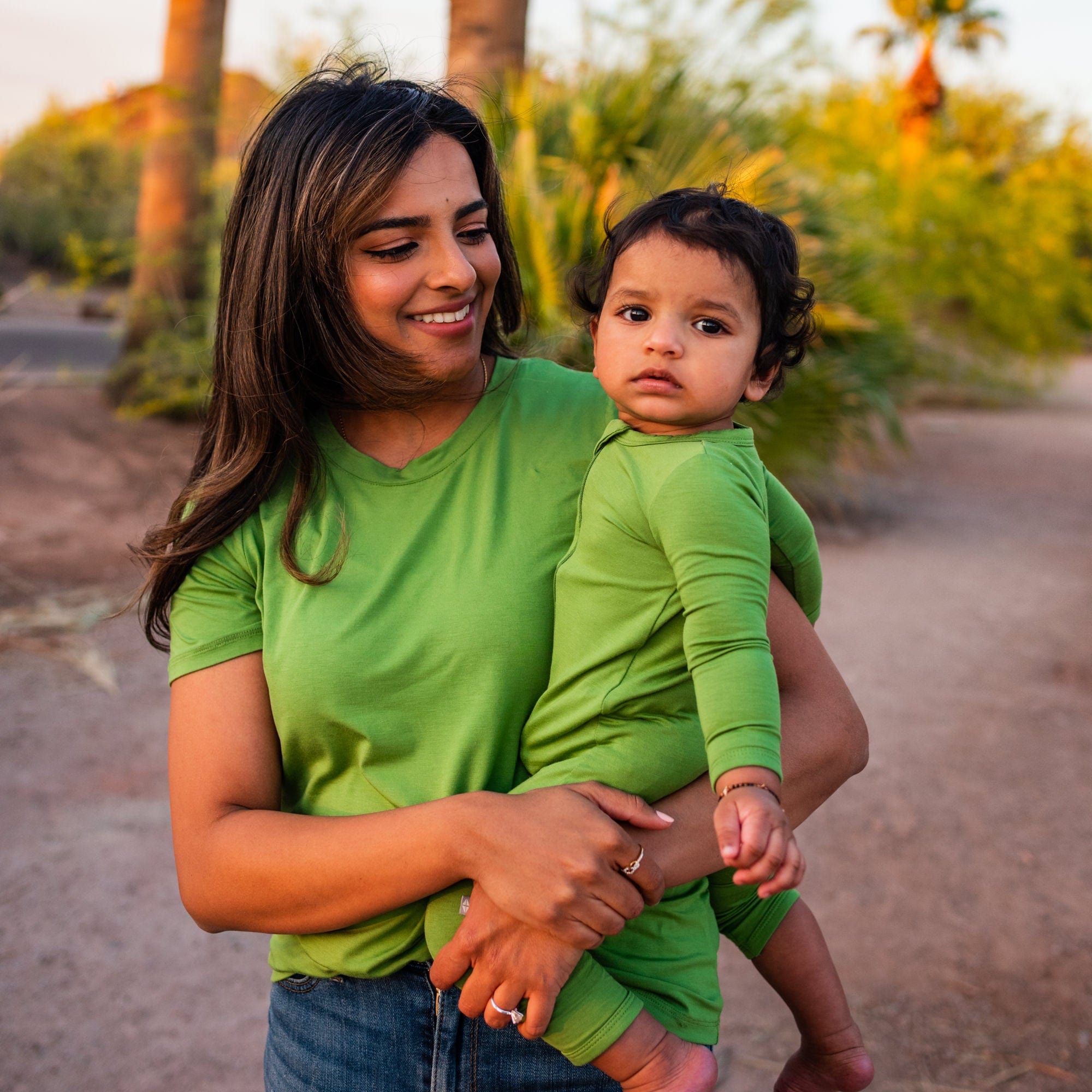 Child in a patterned outfit with promotional text for joining Kyte Baby's frequent flyer program.