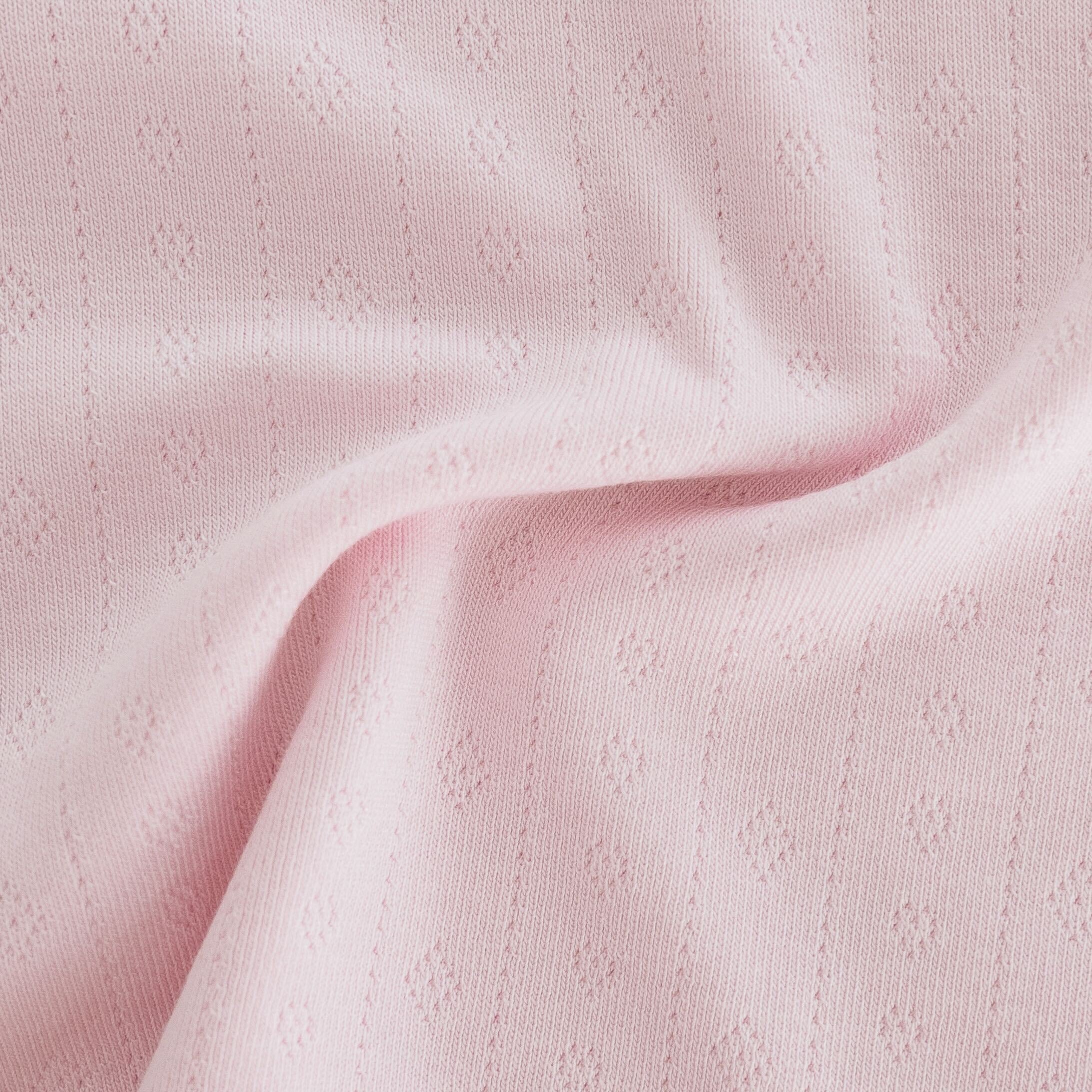 Our pointelle fabric features a soft, lightweight knit with a delicate texture, offering breathable comfort for everyday wear.