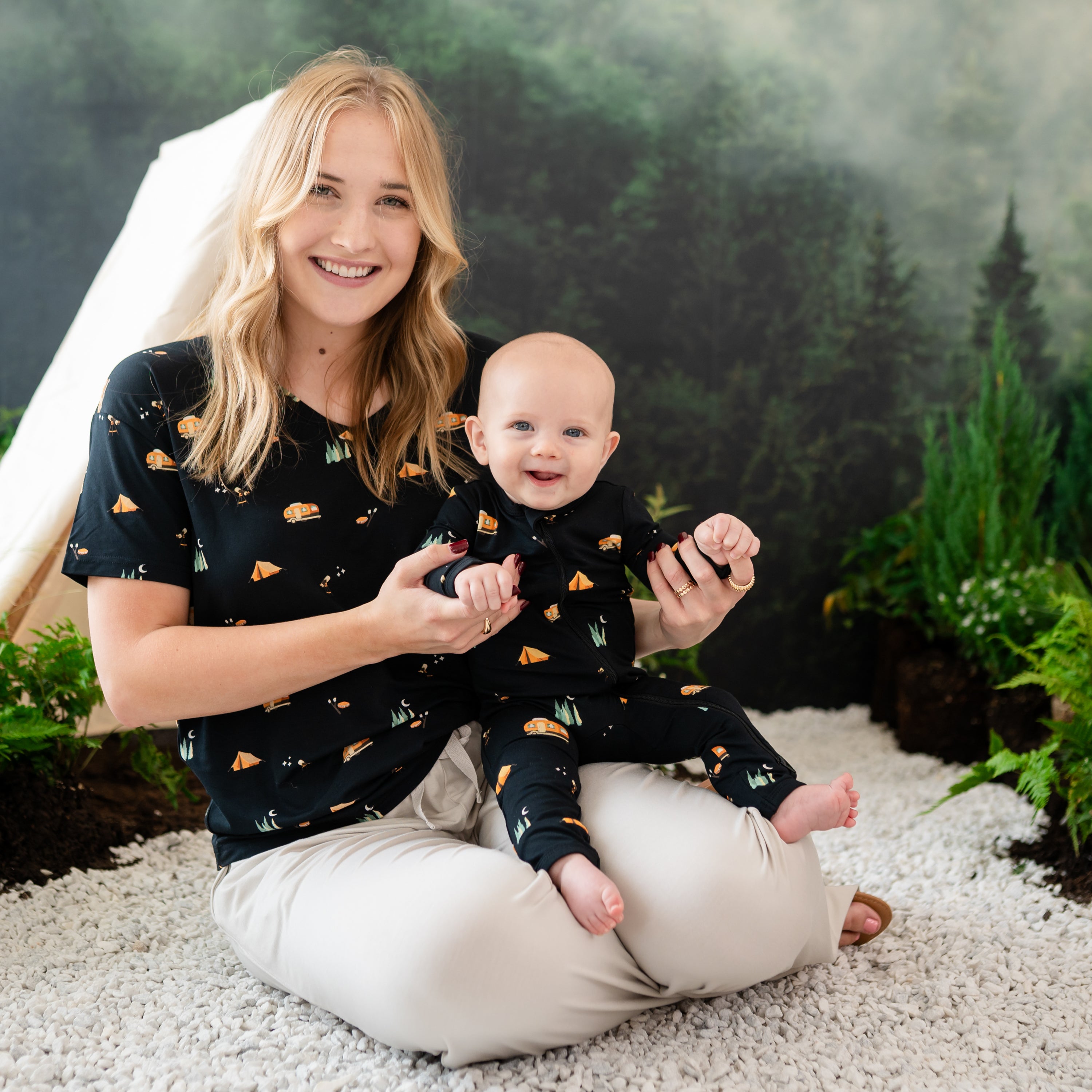 Hear the wilderness calling in our National Park Foundation x Kyte Baby collaboration. Commemorate the spectacular natural beauty of beloved Yellowstone and Yosemite with national park shirts and apparel for the whole family. Nature’s playground is depicted in our Yellowstone shirt with an American bison, Old Faithful geyser, three lodgepole pines, and the Grand Prismatic Spring. Our Yosemite shirt features a black bear, iconic landmarks El Capitan and Half Dome, and the famed giant Sequoia, so you can celebrate America’s best idea with comfortable styles that can take you into the wild. You’ll also love our two prints that commemorate road trips and camping under the stars at your favorite National Parks.