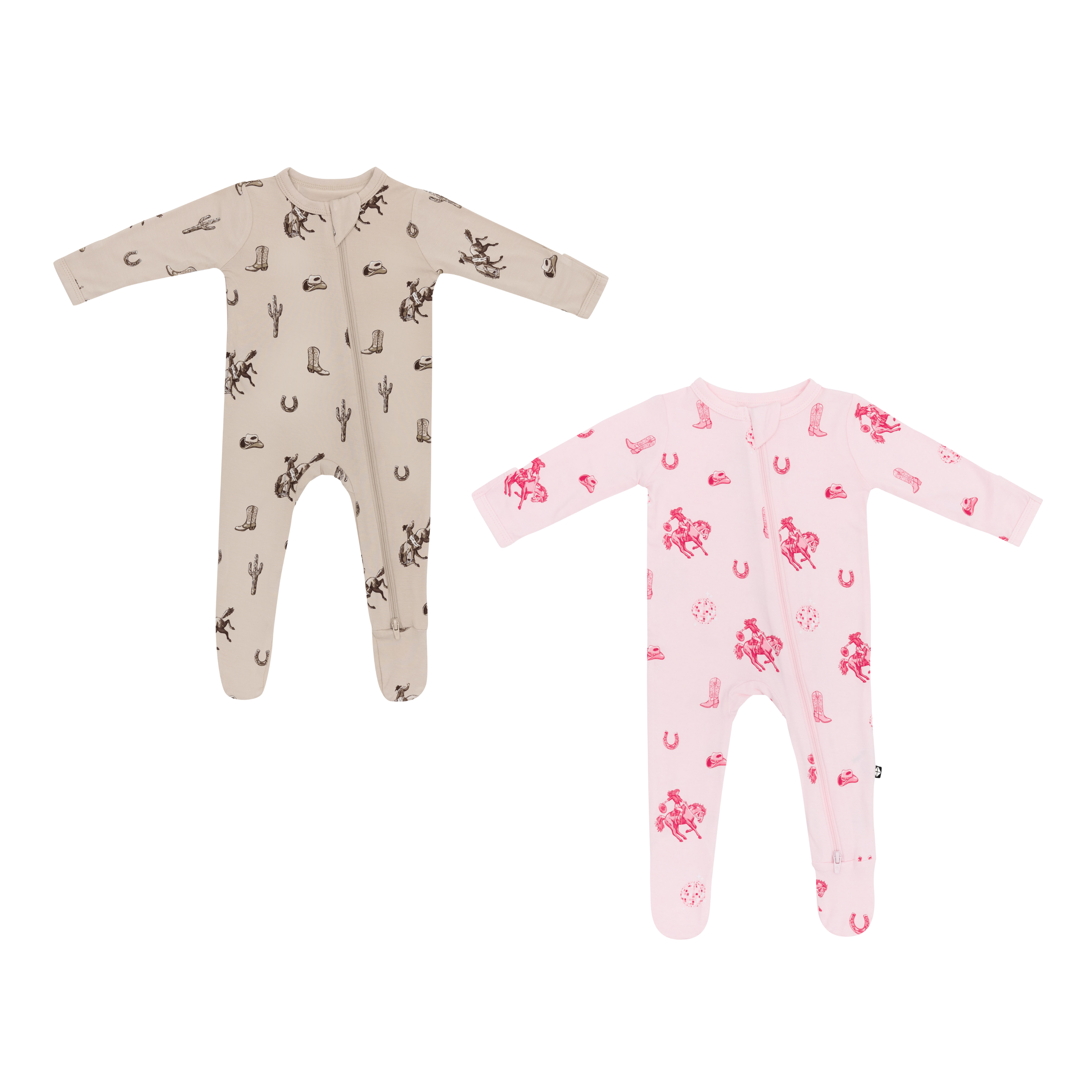 A repeating, all-over print featuring a green Tyrannosaurus rex, a light blue Triceratops, an orange Stegosaurus, and a dark blue Brachiosaurus, over a greyish beige background color called Ecru.