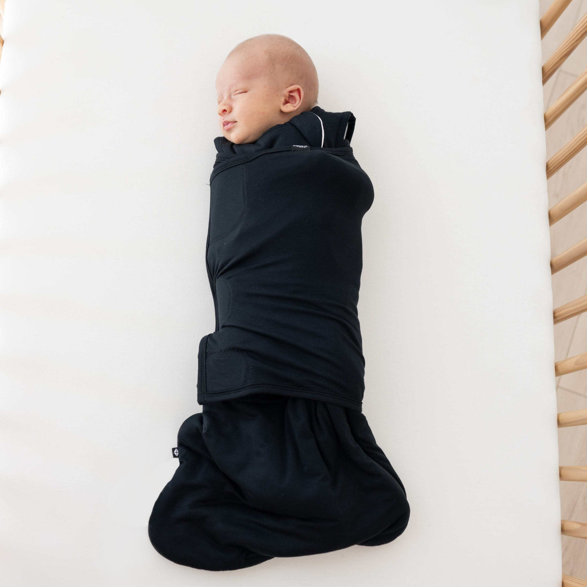 Infant sleeping on Kyte Baby standard Crib Sheet in Dusty Rose