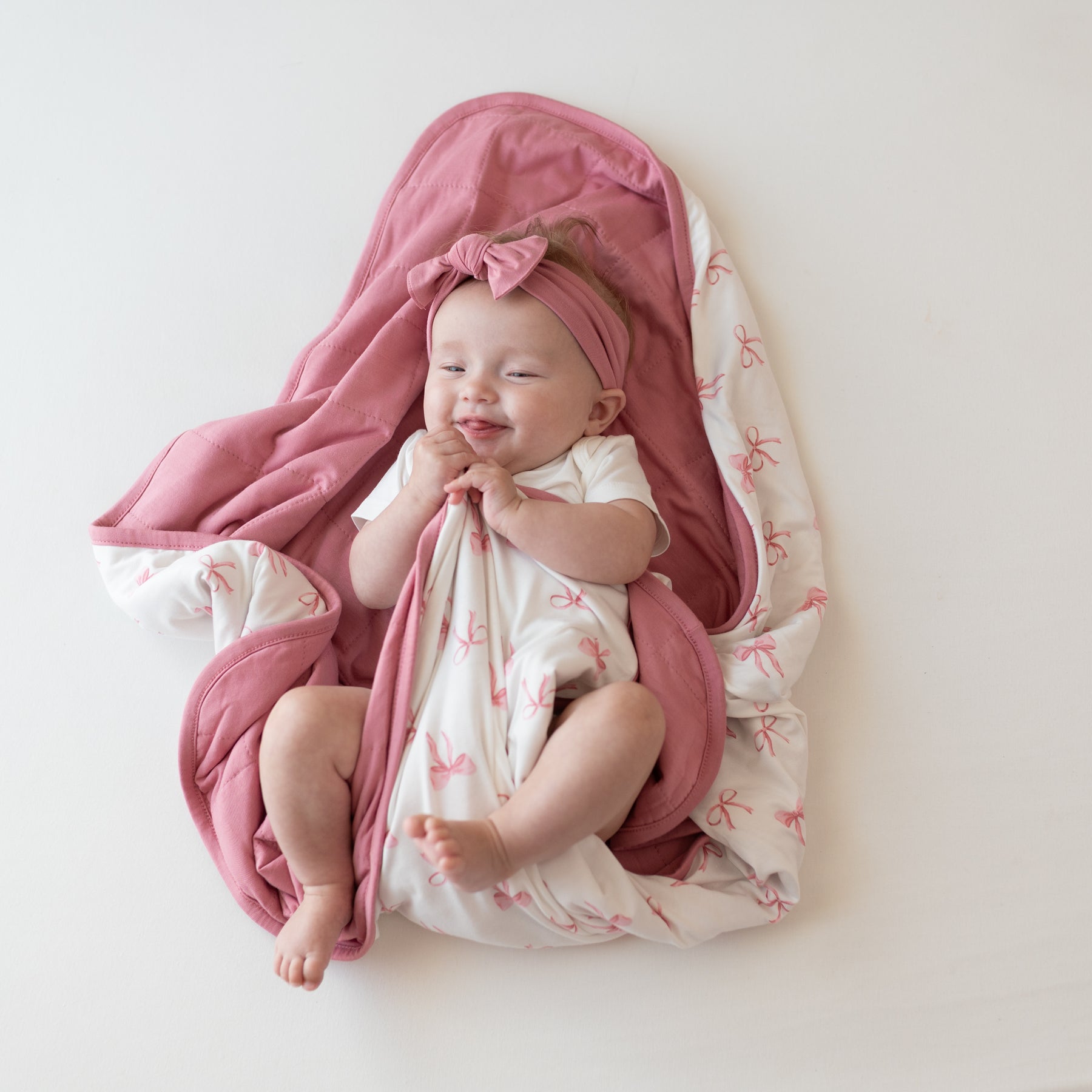 Baby Blanket in Bow with Apple Blossom pink lining